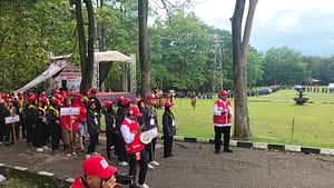 Setelah apel selesai para peserta melaksanakan defile atau catwalk dihadapan beberapa pejabat PMI Jawa Barat dengan membawa papan nama dari sekolah masing masing.